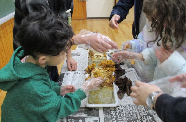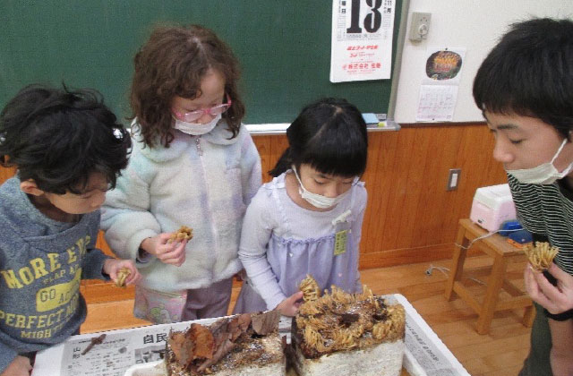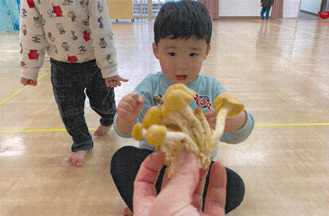 - なめこをたくさん収穫できました。学年の子ども皆がおいしく食べることができ、良かったです(年中・年長)。