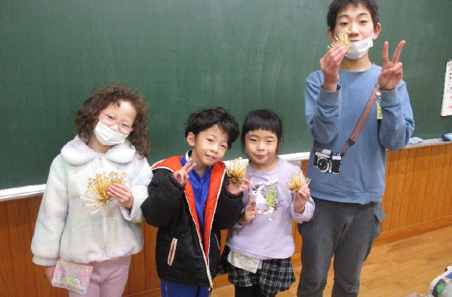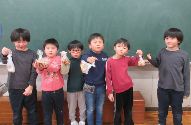 - 干ししいたけにした。数が少なかったため、全員にいきとどかず残念だった(年長クラス)。