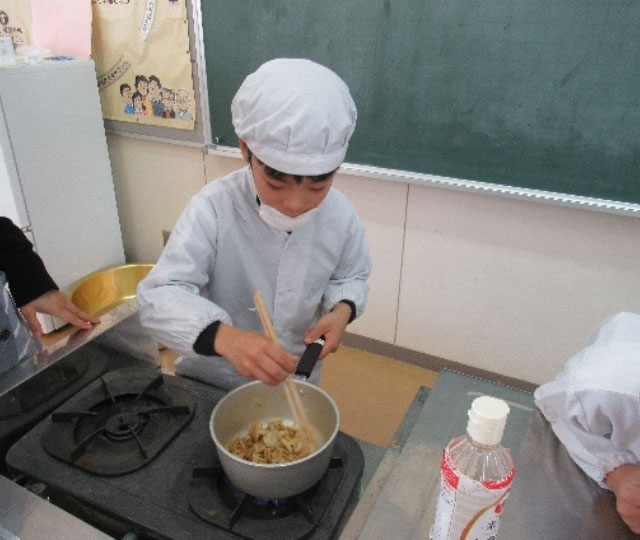 - なめこはみそ汁にして、おいしく頂きました(全学年)。